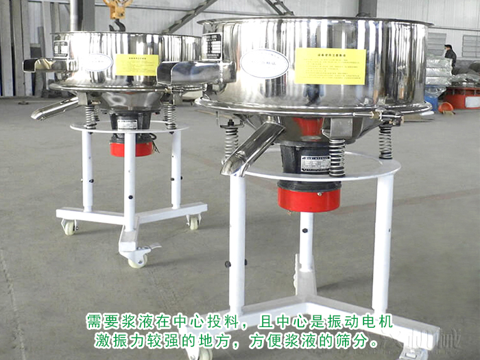 由於漿液具有一定的粘性,流動性非常不好,因此需要漿液在中心投料,且中心是振動電機激振力較強的地方,方便漿液的篩分。