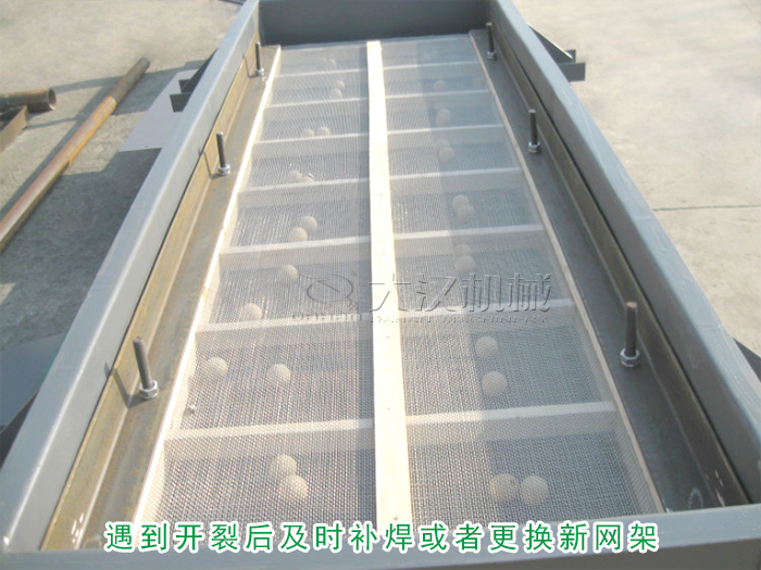 直線振動篩的篩網是由網架固定成型,所以應該檢查網架是不是有變形或開裂,遇到開裂後及時補焊或者更換新網架。