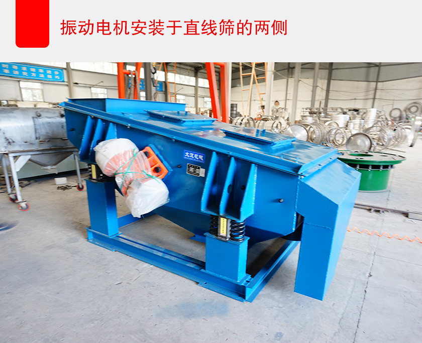 直線振動篩的工作原理主要為雙振動電機進行驅動,利用振動電機的激振力使物料在篩麵上進行直線運動,達到篩分效果。