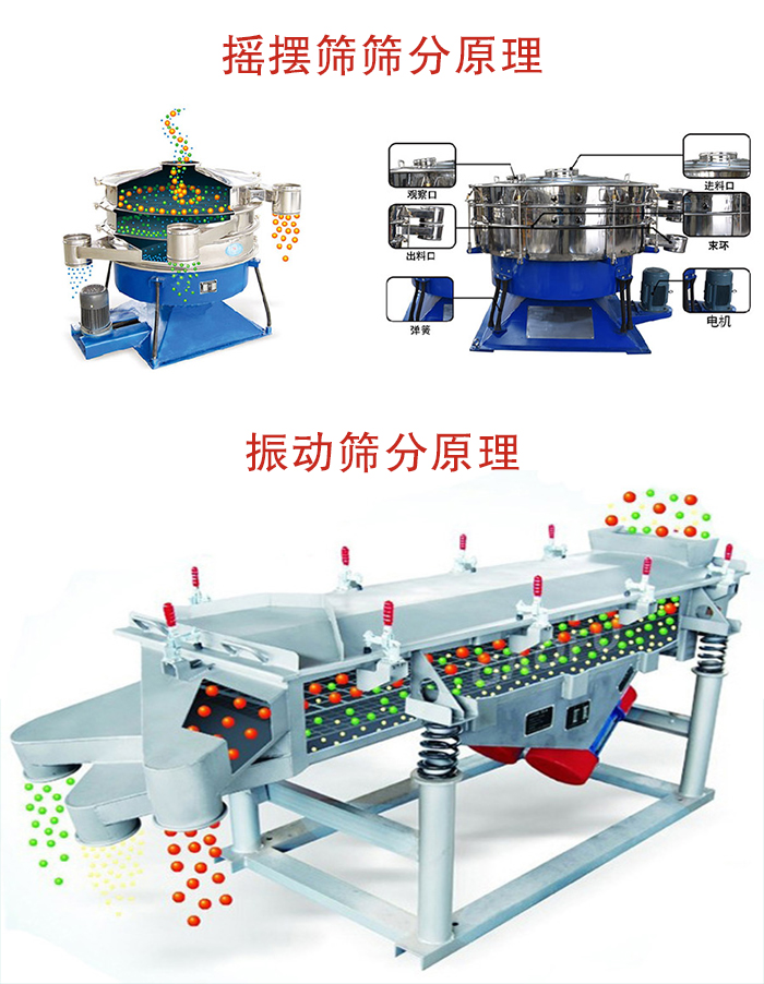 搖yao擺bai篩shai是shi模mo仿fang人ren工gong篩shai分fen,物wu料liao在zai篩shai麵mian做zuo非fei線xian性xing的de三san維wei運yun動dong,既ji有you圓yuan周zhou運yun動dong,又you有you上shang拋pao弧hu運yun動dong,而er振zhen動dong篩shai是shi采cai用yong雙shuang電dian機ji或huo直zhi立li式shi電dian機ji驅qu動dong,物wu料liao運yun動dong軌gui跡ji是shi一yi台tai直zhi線xian或huo者zhe水shui平ping、傾斜、垂直的三次元運動。