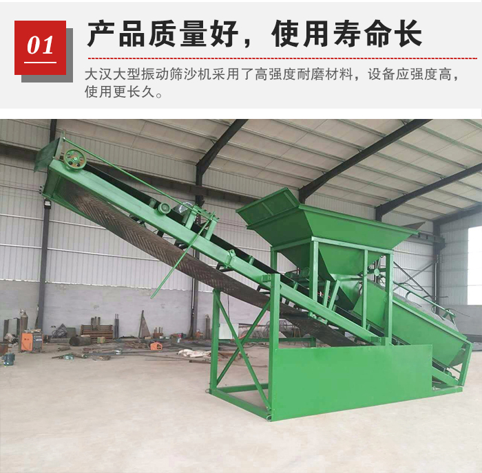 對dui於yu大da型xing振zhen動dong篩shai沙sha機ji現xian場chang來lai說shuo,一yi般ban要yao求qiu的de產chan量liang比bi較jiao大da,所suo以yi要yao求qiu振zhen動dong篩shai沙sha機ji的de承cheng載zai能neng力li要yao足zu夠gou大da,輸shu送song量liang也ye比bi較jiao大da,大da漢han振zhen動dong篩shai沙sha機ji篩shai分fen產chan量liang最zui高gao可ke達da800t/h,篩分產量大。