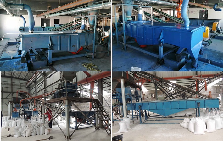 塑料顆粒通過輸送帶進入多層直zhi線xian篩shai設she備bei,由you於yu電dian機ji激ji振zhen力li和he自zi身shen重zhong力li的de雙shuang重zhong作zuo用yong,塑su料liao顆ke粒li沿yan直zhi線xian篩shai麵mian直zhi線xian跳tiao躍yue,上shang層ceng塑su料liao顆ke粒li在zai上shang排pai料liao口kou被bei篩shai出chu,而er小xiao於yu篩shai網wang目mu數shu的de塑su料liao顆ke粒li進jin入ru下xia部bu篩shai網wang,仍reng沿yan同tong一yi物wu料liao運yun動dong軌gui跡ji。經jing過guo三san層ceng篩shai網wang後hou,塑su料liao顆ke粒li分fen為wei大da於yu2.5mm塑料顆粒、2.5mm-1.4mm塑料顆粒、1.4mm-80目塑料顆粒、小於80目塑料顆粒等四種規格的材料,還可根據要求選擇6層不通目數的篩網,以實現要求的分級效果。