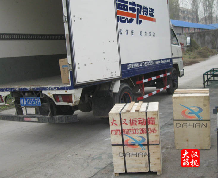 浙江省永康市**砂輪廠胡先生你好,你所采購的大漢牌400型一層振動篩(2台)已通過德邦物流發出,預計3天左右到達,請注意查收,使用前請先拆除運輸支撐架並詳細閱讀振動篩使用說明書,感謝你對大漢公司的信任和支持,祝工作順利,萬事如意。