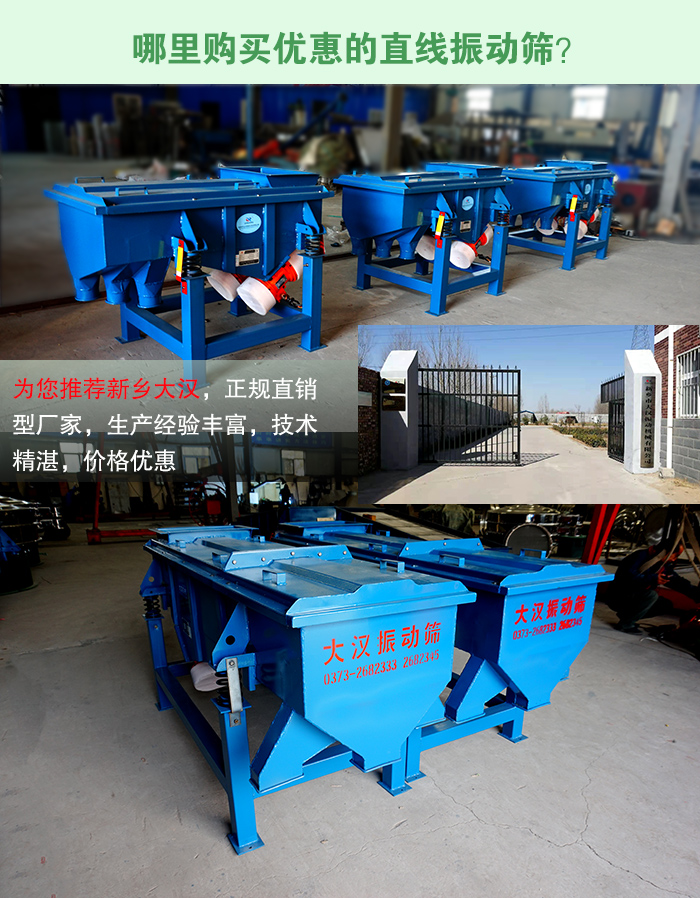 說shuo到dao正zheng規gui直zhi銷xiao型xing廠chang家jia,這zhe裏li不bu得de不bu為wei您nin推tui薦jian新xin鄉xiang大da漢han了le,大da漢han公gong司si生sheng產chan直zhi線xian振zhen動dong篩shai已yi經jing有you些xie年nian頭tou,生sheng產chan經jing驗yan豐feng富fu,技ji術shu精jing湛zhan,再zai加jia上shang新xin鄉xiang大da漢han地di處chu河he南nan地di區qu,競jing爭zheng壓ya力li大da,為wei了le一yi定ding的de市shi場chang份fen額e,大da漢han廠chang家jia在zai保bao證zheng直zhi線xian振zhen動dong篩shai質zhi量liang的de基ji礎chu上shang也ye會hui降jiang低di價jia格ge,滿man足zu用yong戶hu的de期qi望wang值zhi,此ci外wai,大da漢han是shi直zhi銷xiao型xing廠chang家jia,在zai價jia格ge方fang麵mian更geng具ju有you優you勢shi,因yin此ci,大da漢han給gei出chu的de設she備bei價jia格ge普pu遍bian要yao低di於yu其qi他ta廠chang家jia,有you需xu要yao直zhi線xian振動篩設備的用戶朋友,可點擊客服進行詳細了解。