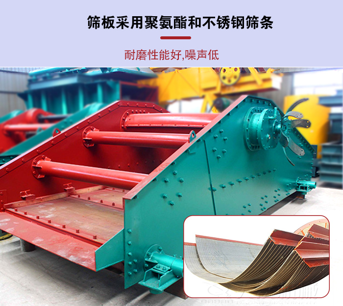 1,篩板采用聚氨酯和不鏽鋼篩條製作,篩板四周用聚氨酯材料,具有耐磨性能好,噪聲低的特點。