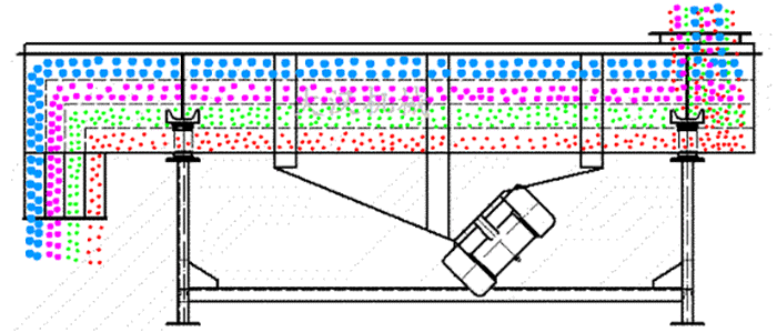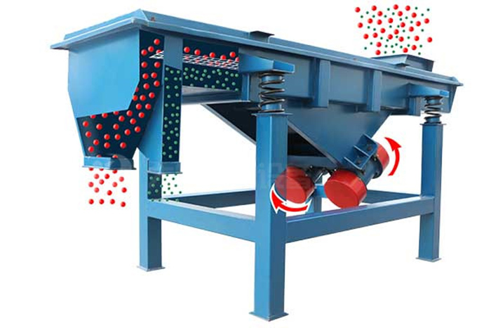 直線型振動篩兩電機軸相對篩麵有一傾角,在激振力和物料自重力的合力作用下,物料在篩麵上被拋起跳躍式向前作直線運動,從而 達到對物料進行篩選和分級的目的。可用於流水線中實現自動化作業。