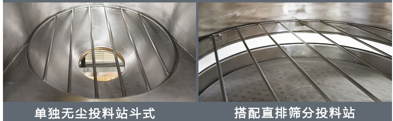 設置格柵,有效防止PE袋與粉末接觸,並配有振動篩(一般是直排篩或旋振篩),可有效攔截異物,確保出料合格。
