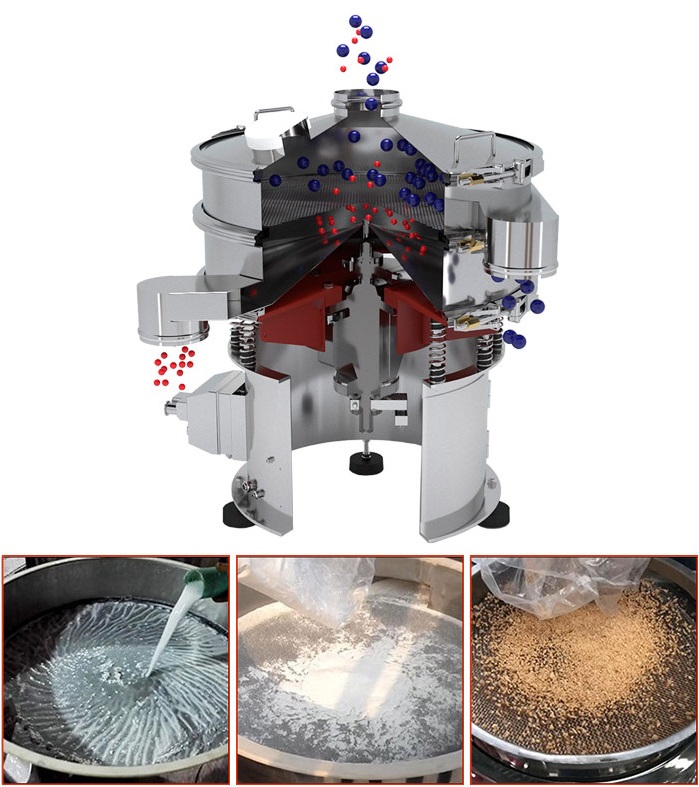 旋xuan振zhen篩shai分fen機ji是shi利li用yong電dian機ji軸zhou上shang的de配pei重zhong的de簡jian單dan調tiao整zheng以yi及ji它ta們men產chan生sheng的de三san維wei振zhen動dong來lai篩shai選xuan物wu料liao,可ke用yong於yu去qu除chu破po碎sui或huo尺chi寸cun過guo小xiao的de產chan品pin,可ke在zai一yi次ci操cao作zuo中zhong提ti供gong多duo達da5級的分級,以實現的粒度分布,篩分高達500目。可根據篩分物料的特性選擇不同的配置,如移動型、超聲波清網型、直泄型、泥漿高頻型、噴水型、閘門型等。