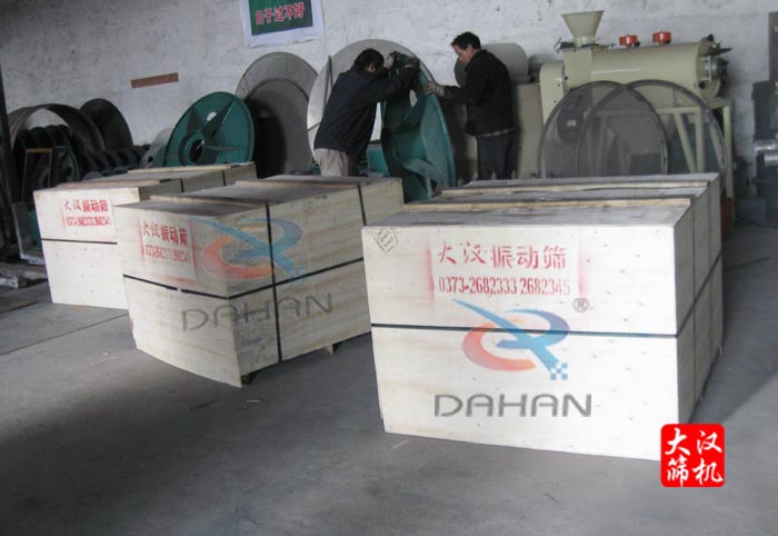 DH-1000型一層振動篩(3台)木箱包裝,發貨現場實物圖