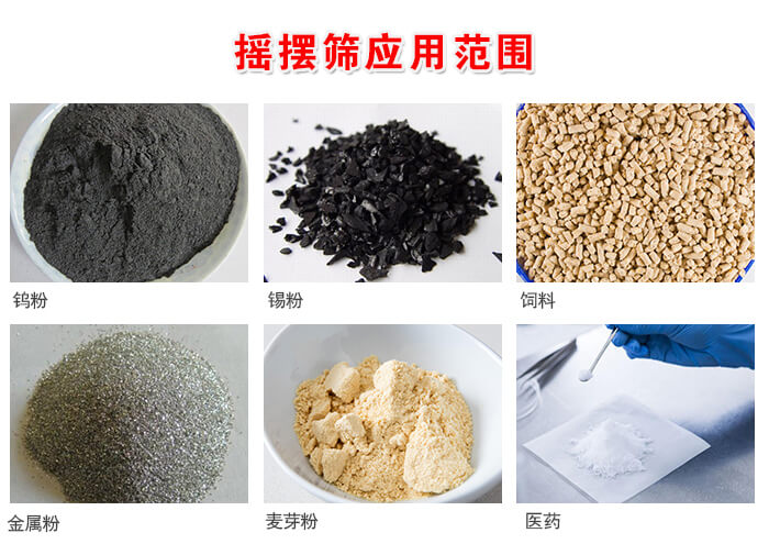 搖擺篩既ji可ke用yong於yu幹gan式shi篩shai分fen,也ye可ke用yong於yu濕shi式shi篩shai分fen。它ta篩shai麵mian與yu篩shai框kuang可ke用yong多duo種zhong材cai料liao和he不bu同tong工gong藝yi加jia工gong製zhi作zuo,並bing可ke方fang便bian地di多duo層ceng疊die加jia使shi用yong。搖yao擺bai篩shai為wei全quan封feng閉bi結jie構gou,不bu存cun在zai物wu料liao粉fen塵chen外wai溢yi的de現xian象xiang,並bing可ke方fang便bian地di加jia設she幹gan燥zao,冷leng卻que,除chu塵chen,清qing洗xi等deng輔fu助zhu設she施shi。