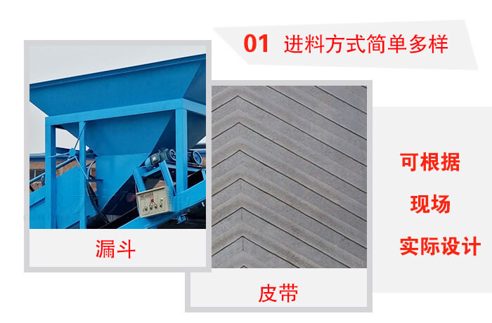 我公司研製的重型滾筒篩進料口可根據現場實際設計,無論是皮帶、漏鬥或其它進料方式,不用采取特殊措施,都可以順暢進料。