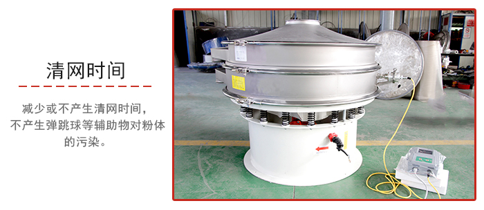 改善低密度粉在重力沉降中的平降(粉末與網口輕接觸)滑hua移yi效xiao應ying,改gai善shan高gao密mi度du金jin屬shu在zai網wang口kou滯zhi留liu或huo楔xie入ru,改gai善shan帶dai靜jing電dian粉fen體ti的de粘zhan附fu效xiao應ying,從cong而er提ti高gao篩shai分fen效xiao率lv和he篩shai分fen質zhi量liang。用yong篩shai分fen通tong過guo率lv表biao示shi,一yi般ban情qing況kuang下xia比bi普pu通tong旋xuan振zhen篩shai增zeng加jia通tong過guo率lv50%-400%。